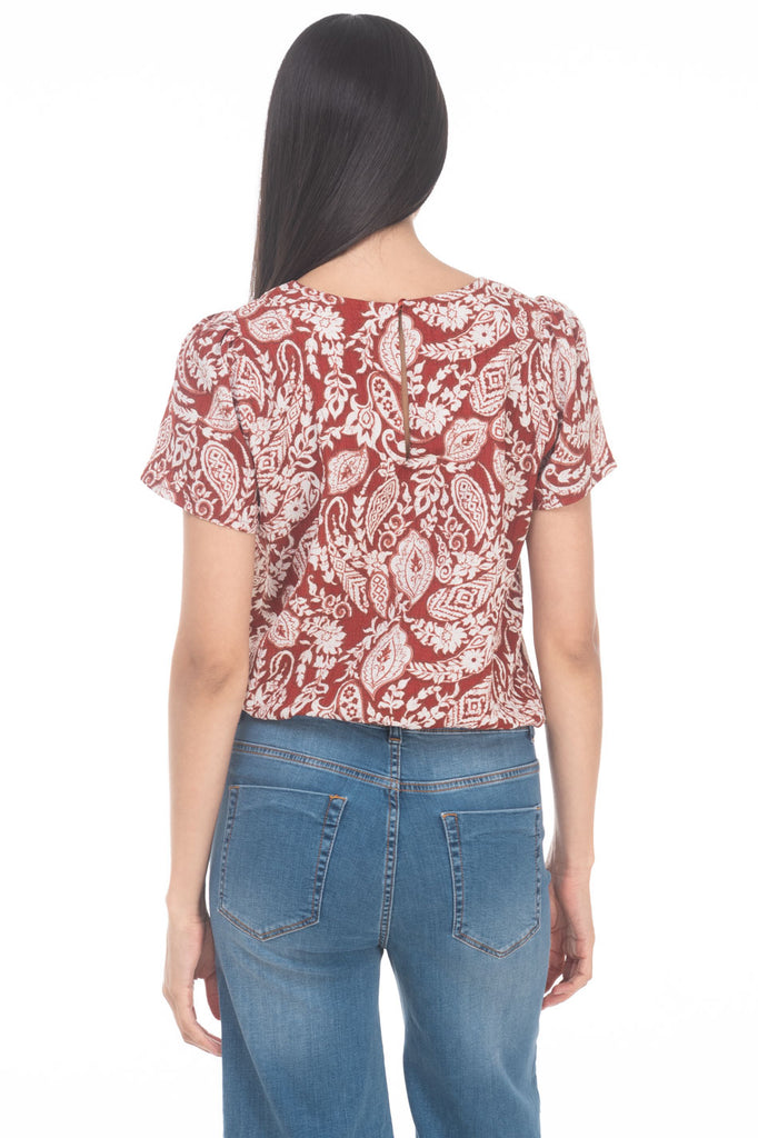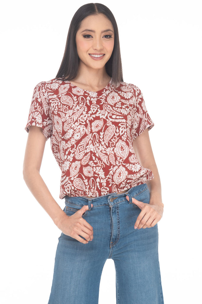 Blusa Cerrada A La Cadera Floral Cuello Redondo Manga Corta