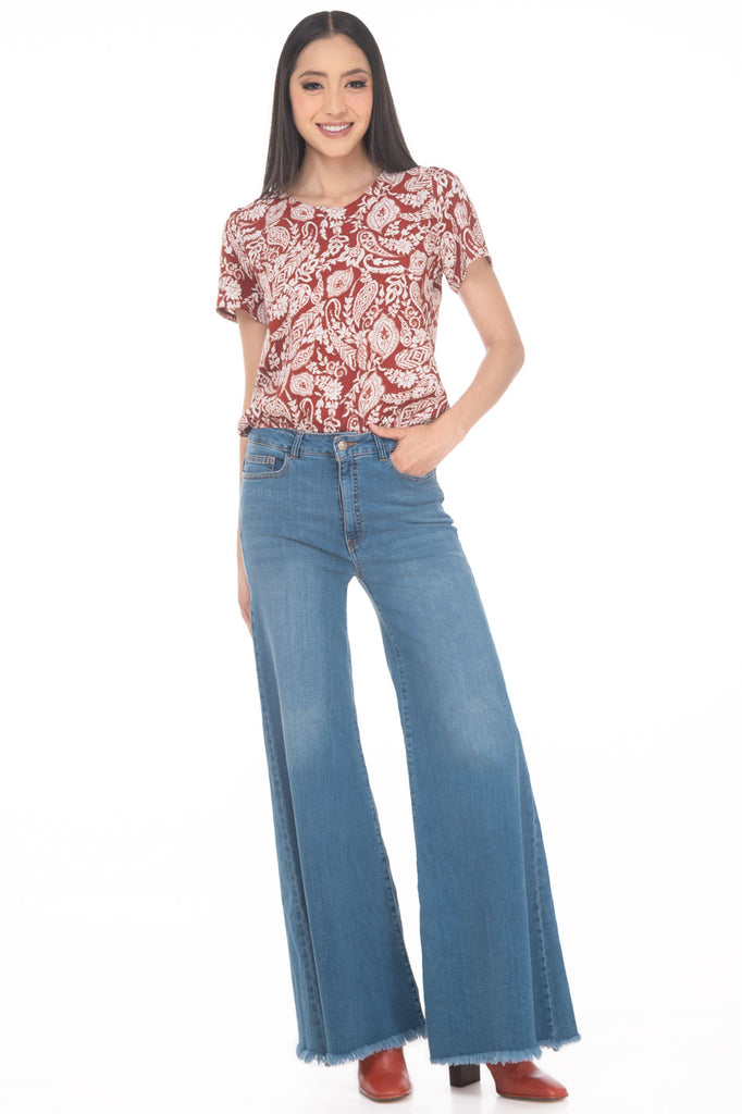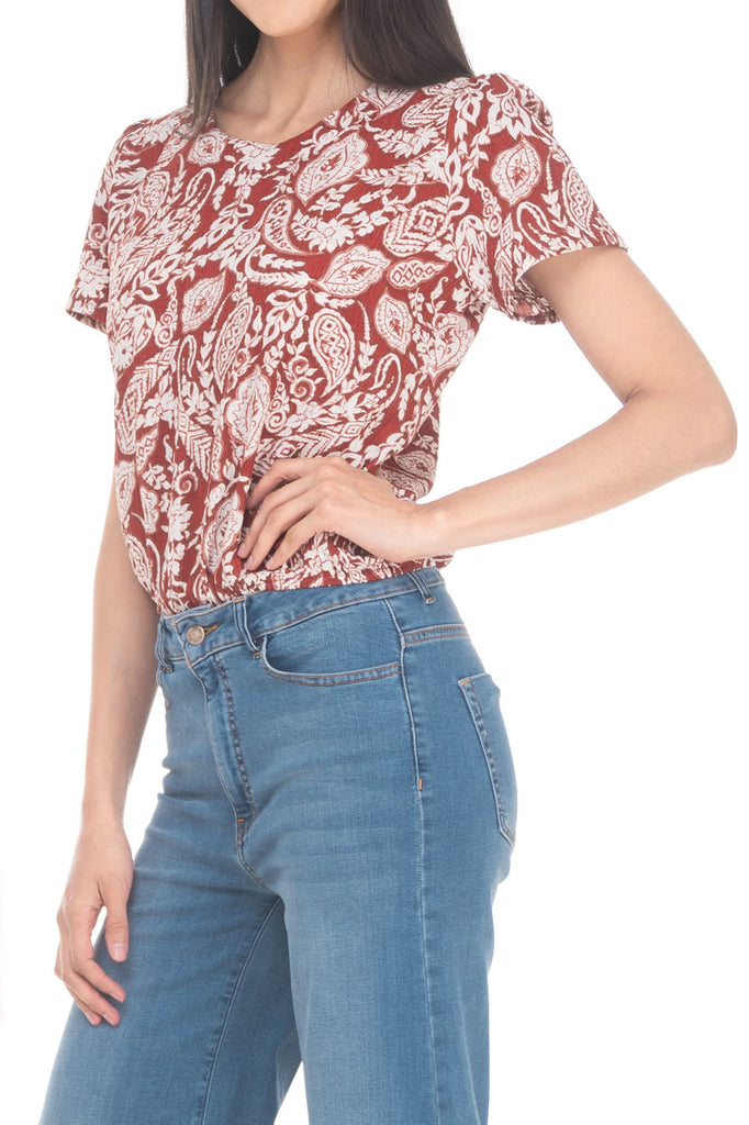 JC1135:2511:Blusa Cerrada A La Cadera Floral Cuello Redondo Manga Corta