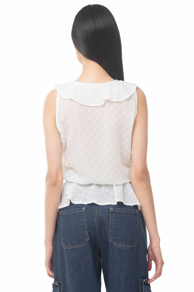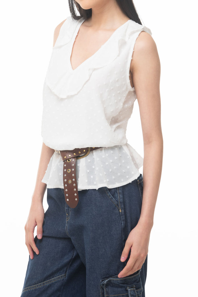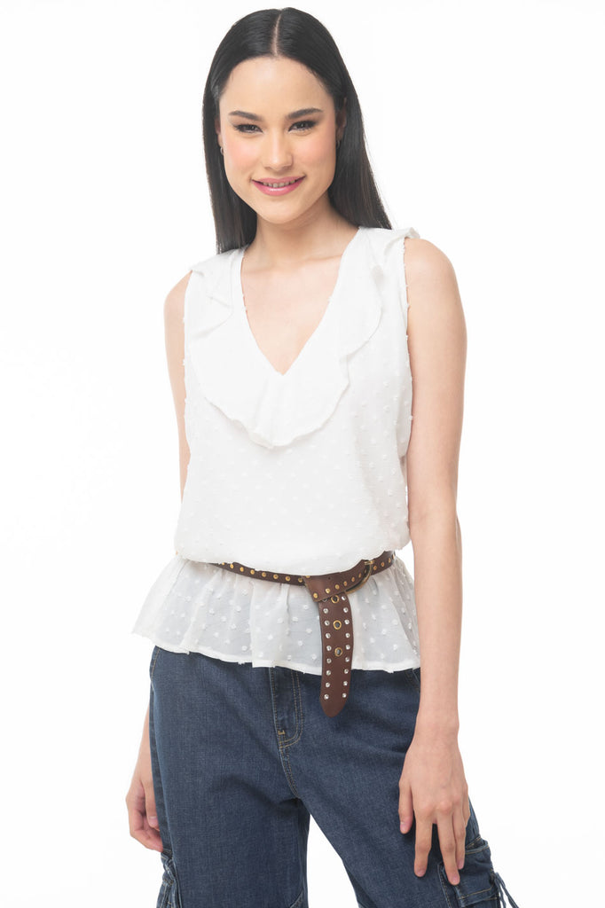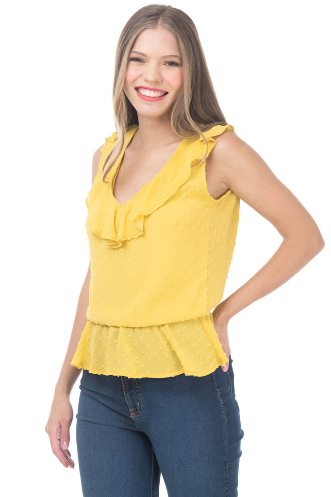 S10598:2506:Blusa Campirana Escote En V Con Olan Y Resorte Sin Mangas