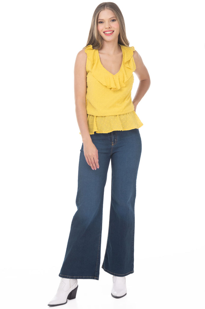 Blusa Campirana Escote En V Con Olan Y Resorte Sin Mangas