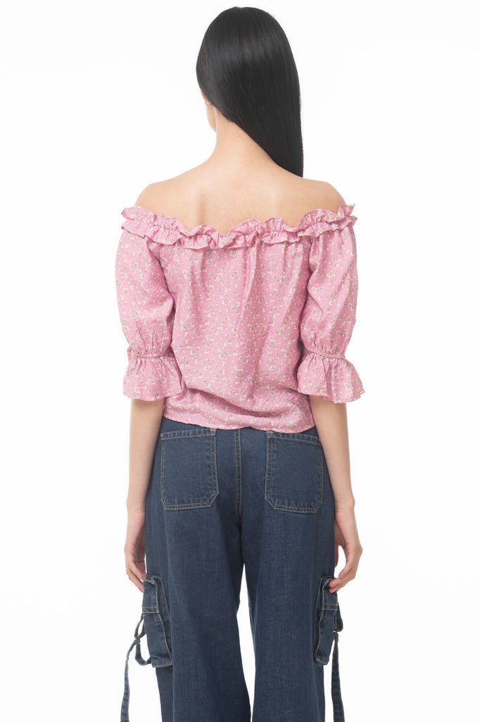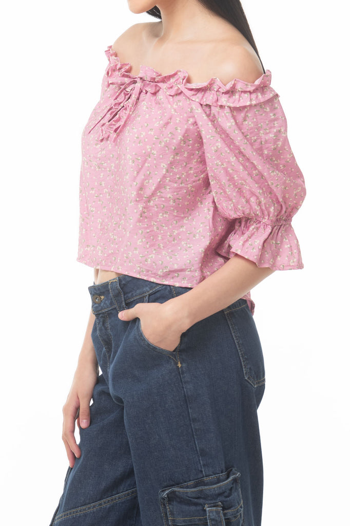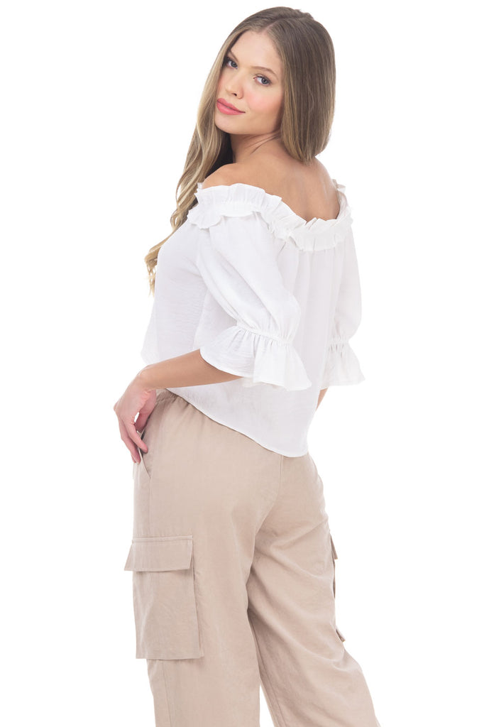 S10605:2506:Blusa Asimetrica Lisa A La Cadera Escote Bardot Manga Corta
