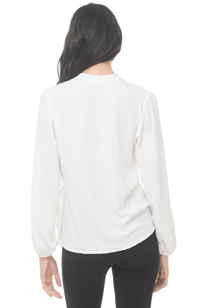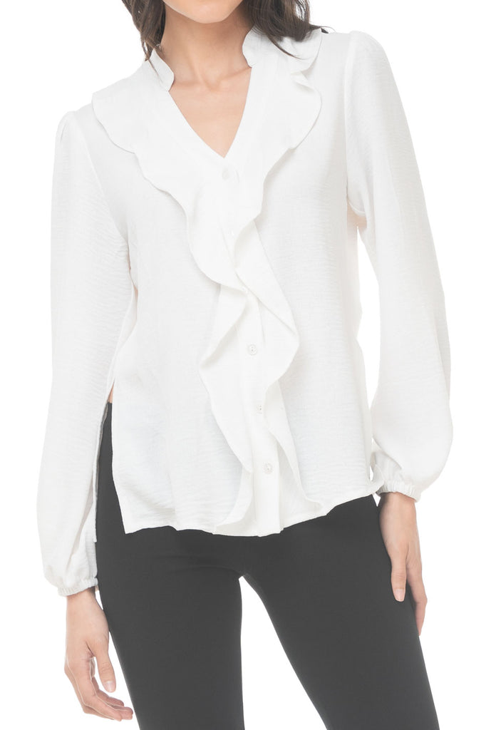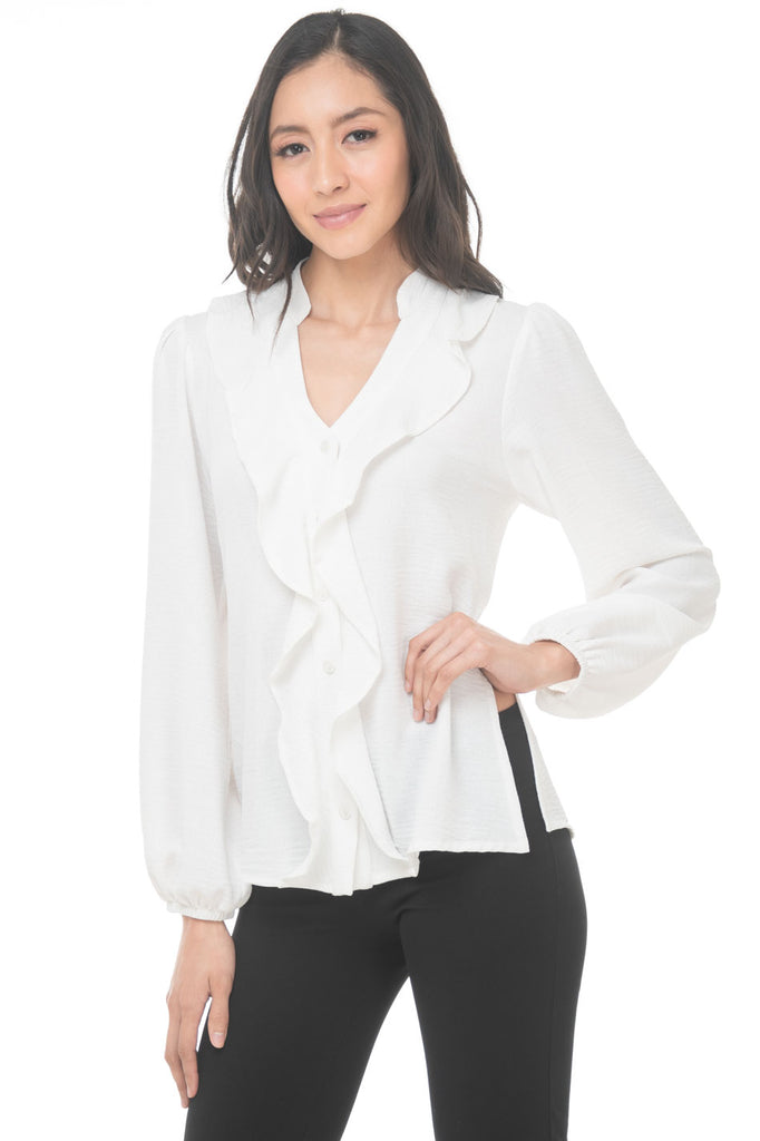 S10623:2509:Blusa Recta Lisa Con Escarola Cuello En V Manga Larga