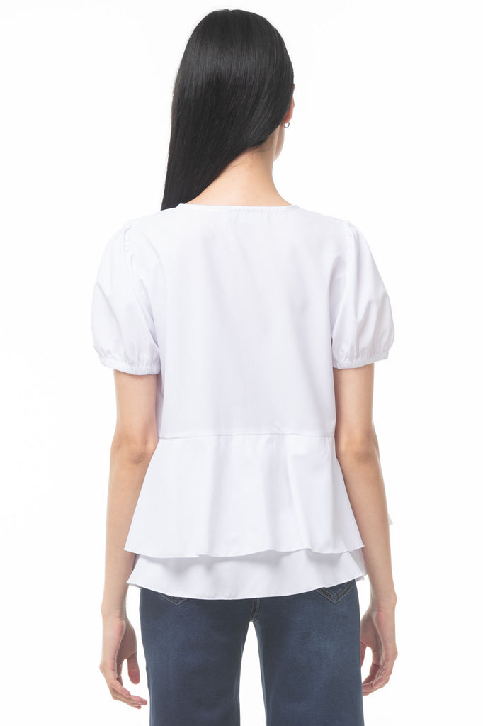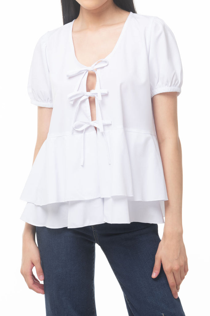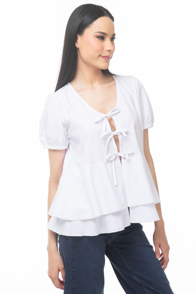 S10624:2508:Blusa Abierta Boho Lisa Con Olanes Y Amarres Escote En V