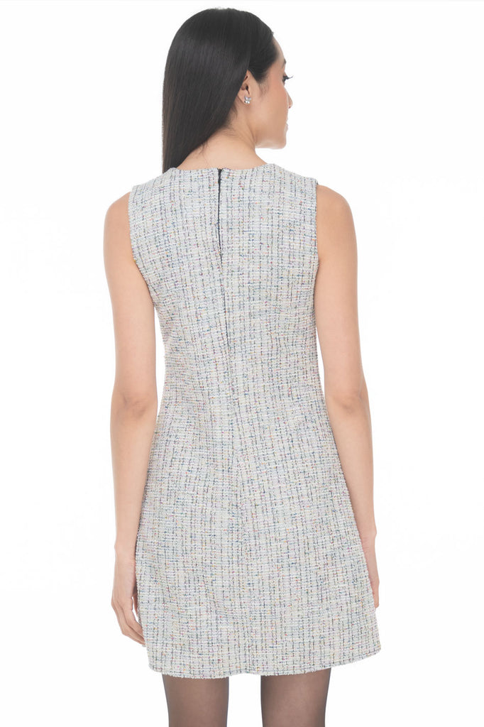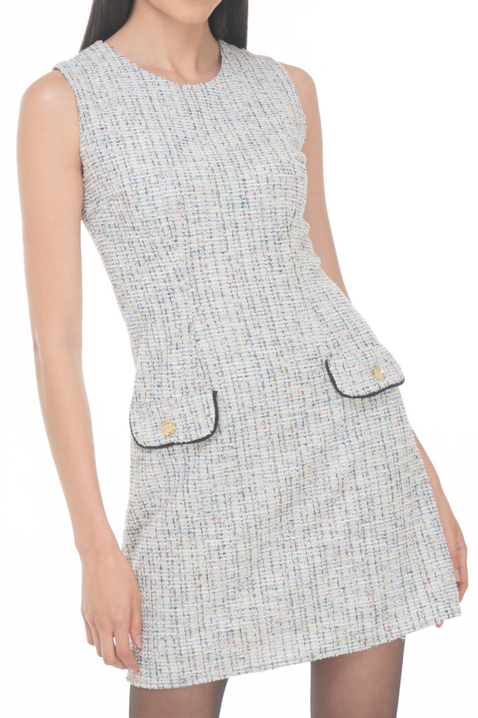 Vestido Linea A Corto Tipo Chanel Cuello Redondo Sin Mangas