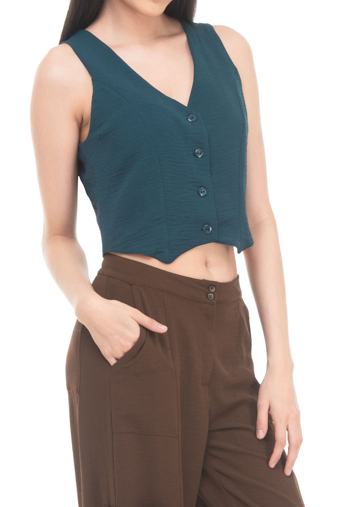 S10675:2511:Chaleco Tipo Halter A La Cintura Con Cierre Escote En V