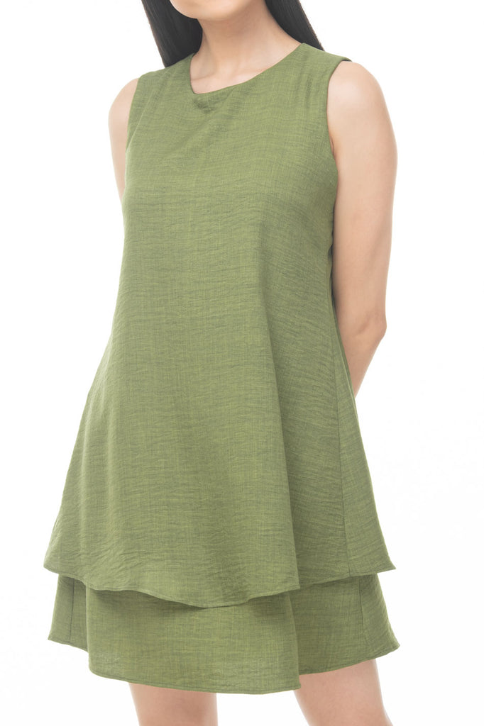 SE0725:2508:Vestido Linea A Liso Corto Sin Mangas Cuello Redondo