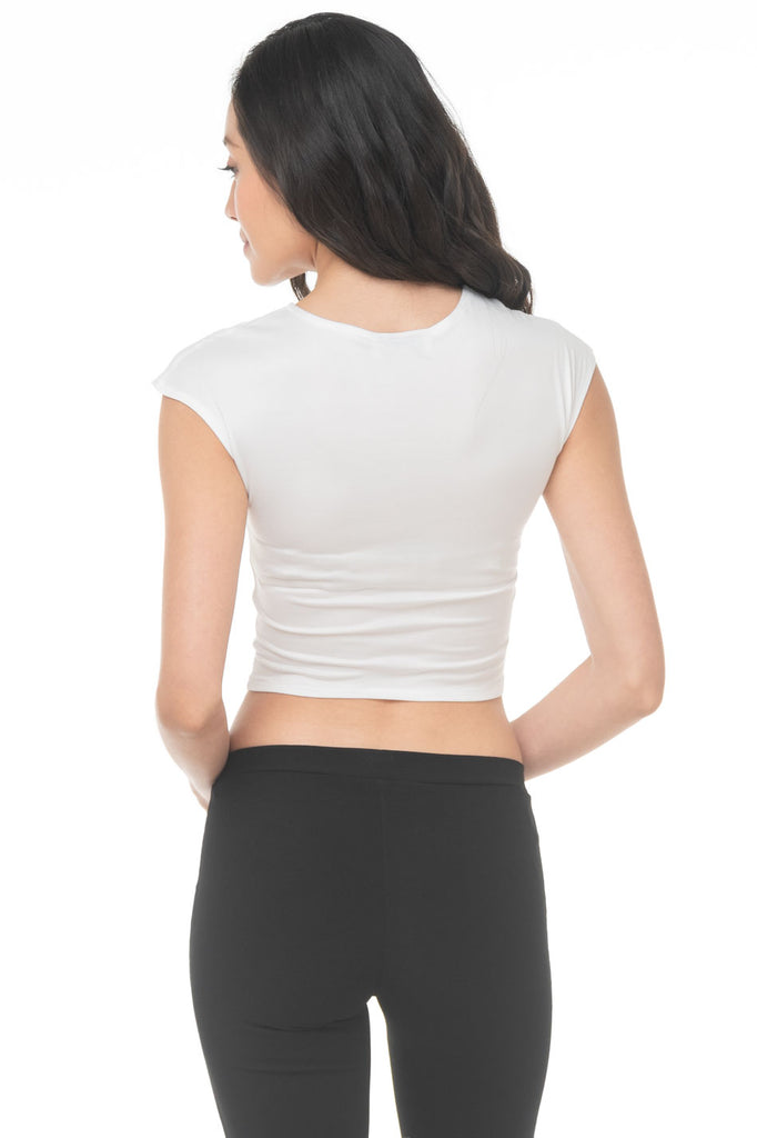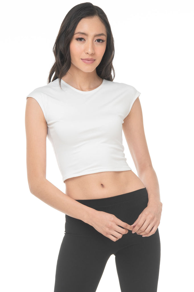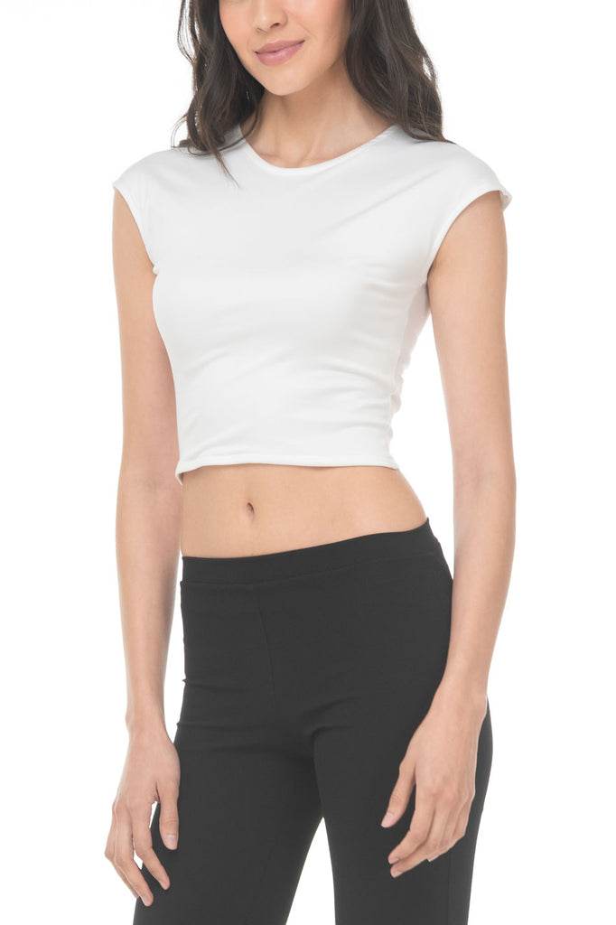 Top liso corto, casual, de cuello redondo y sin mangas en color hueso.