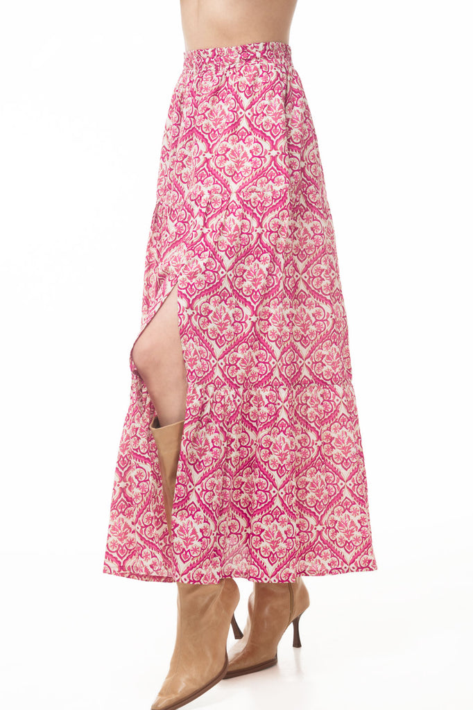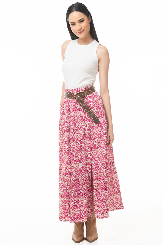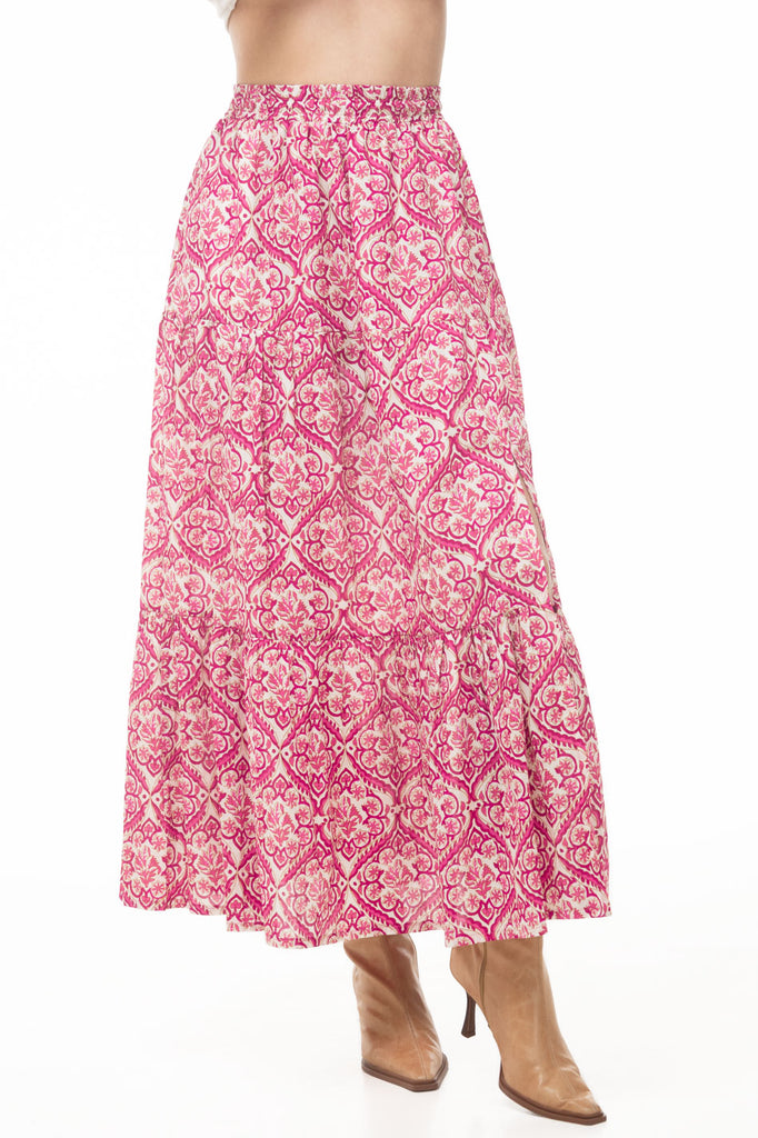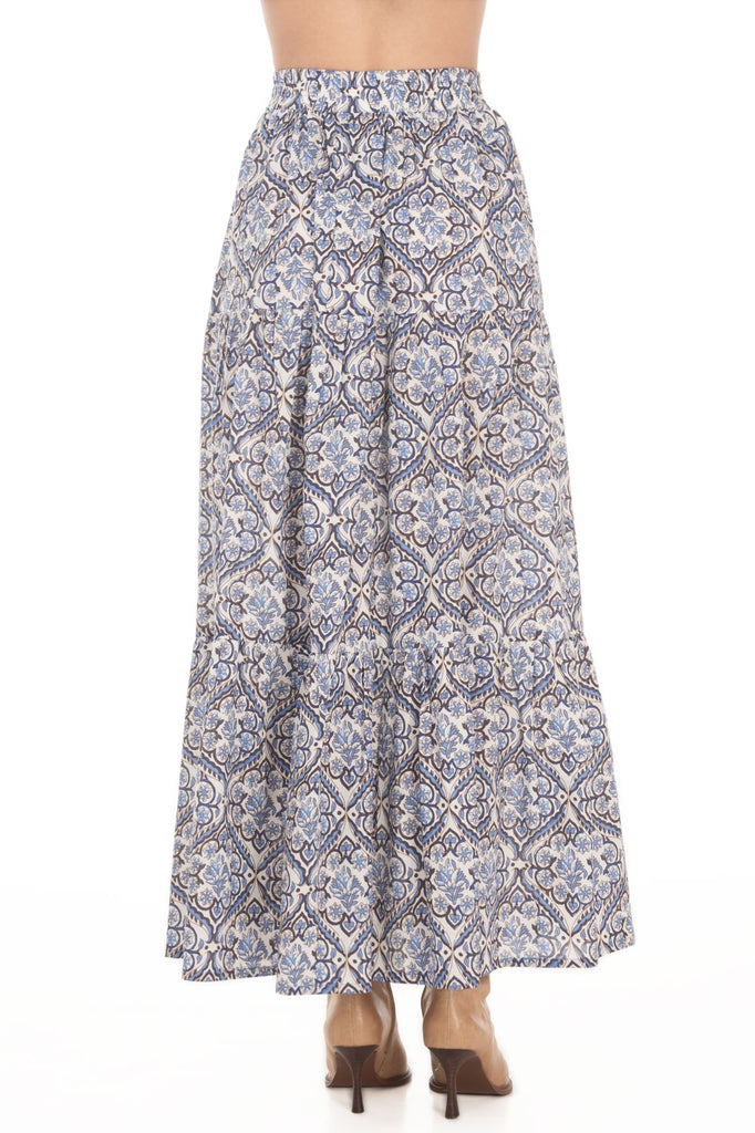 JC1078:2506:Falda Campesina Estampada Maxi Larga Con Olanes Y Elastico