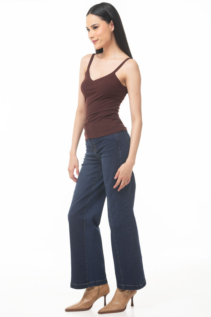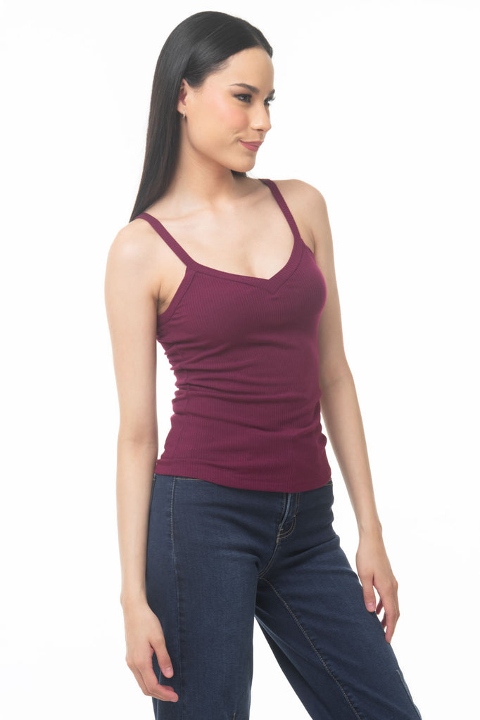 S10635:2508:Top Rib Recto Liso A La Cadera Escote En V Con Tirantes