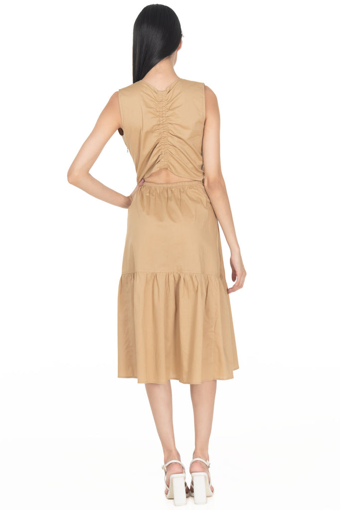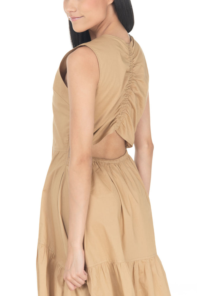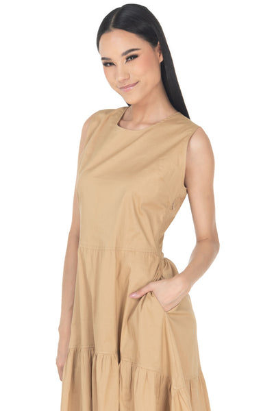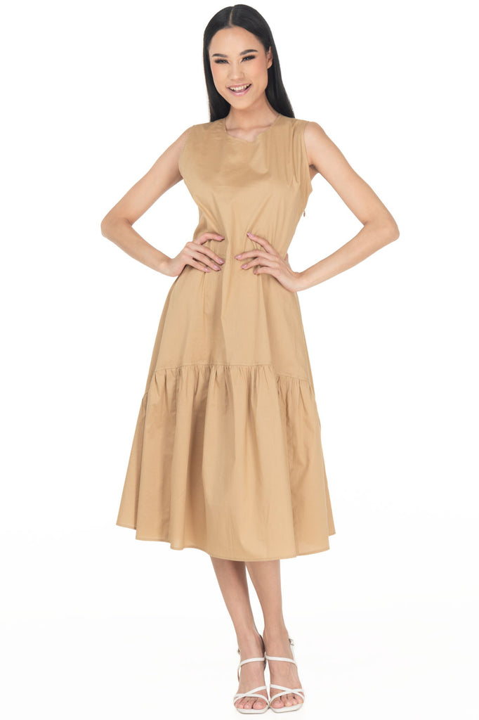 Vestido Semicircular Liso Midi Cuello Redondo Sin
