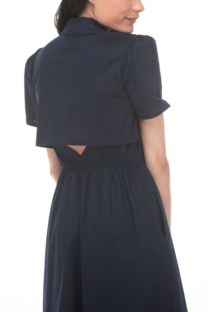 Vestido Camisero Liso Midi Con Cruze En Espalda Manga Corta
