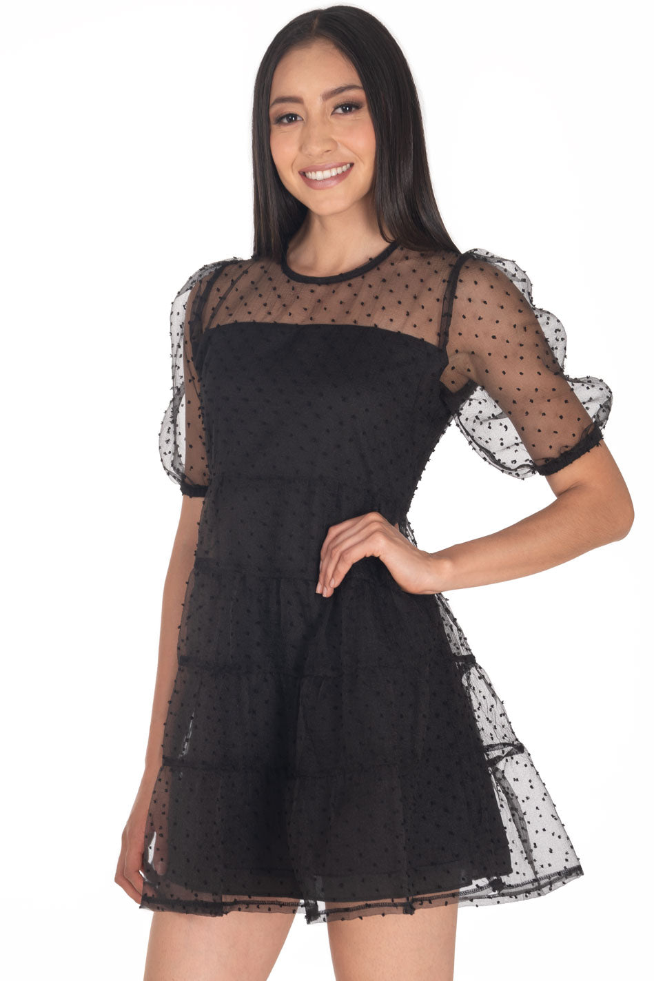 Vestido Lunares Corto Linea A Con Olanes Mang