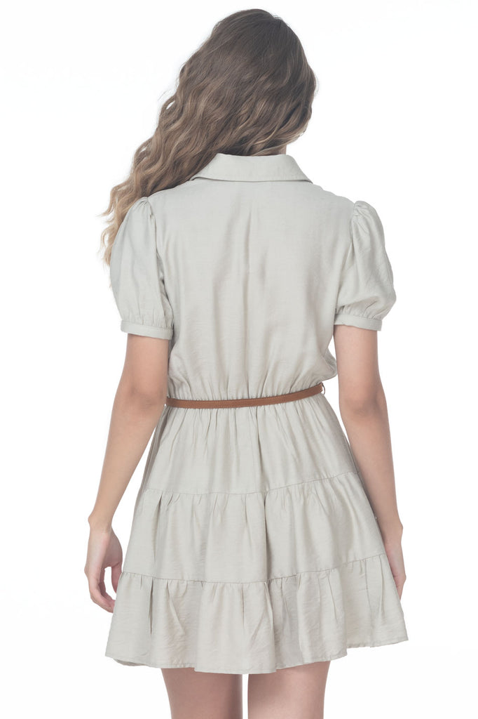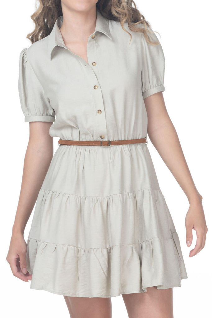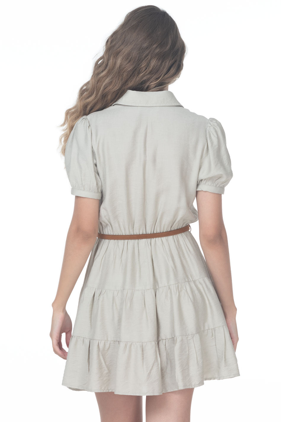 Vestido Camisero Liso Corto Con Cinturón Mang