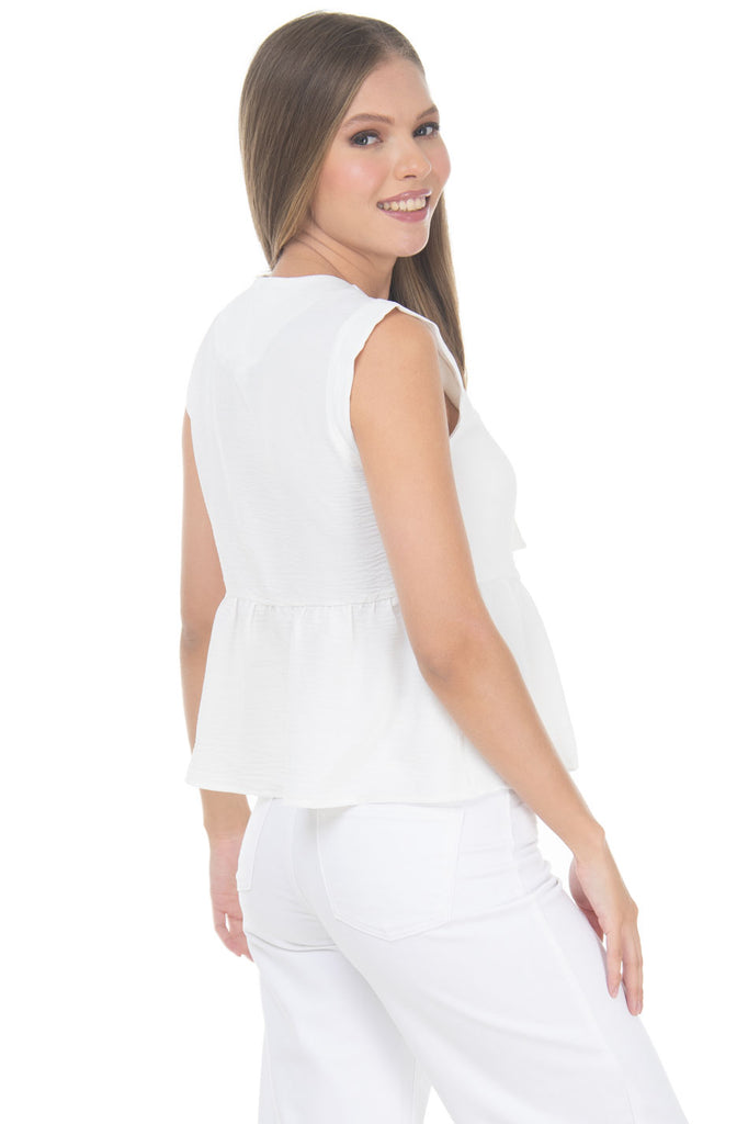 Esta blusa lisa a la cadera en color blanco es la prenda ideal para lucir fresca y con estilo en cualquier ocasión.