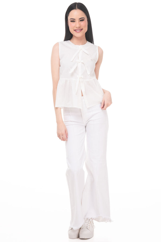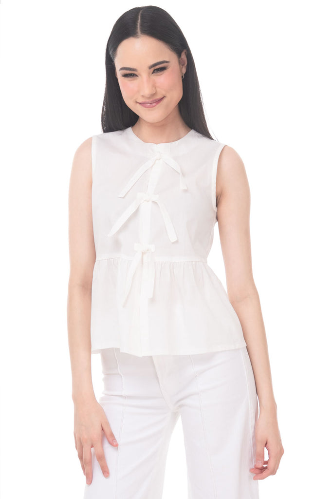 S10691:2602:Blusa Peplum Lisa Corta Con Cintas De Amarre Cuello Redondo