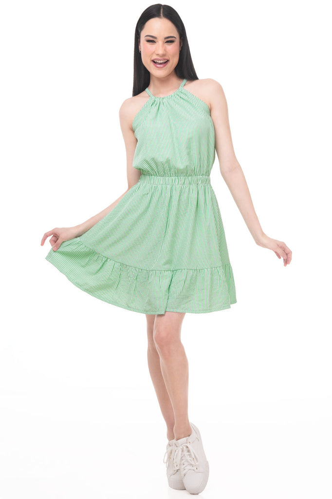 S10693:2602:Vestido Semicircular Halter A Rayas Corto Cuello Redondo
